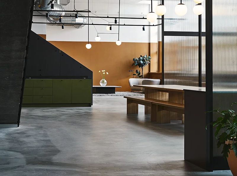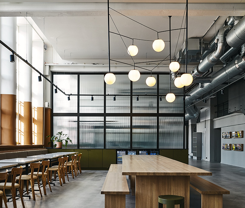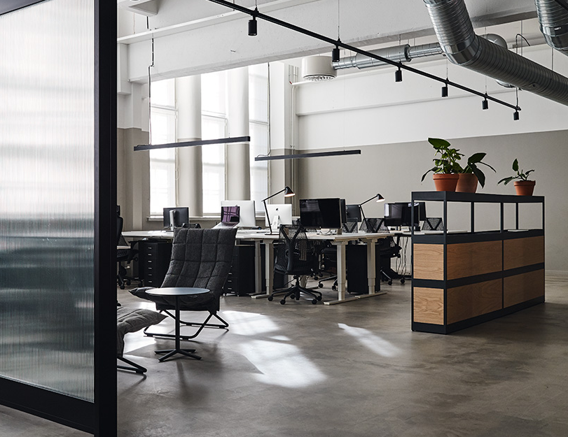 6米高的工業(yè)空間,辦公室裝修總面積1500平方米,分為公共和私人區(qū)域,以確保不同層次的互動。在入口處,大堂和咖啡廳等公共空間鼓勵員工和顧客交往。會議室位于通向后方的長廊上。這里和二樓閣樓上都是專門為員工提供的空間。