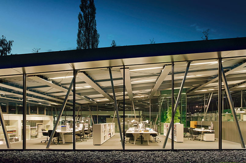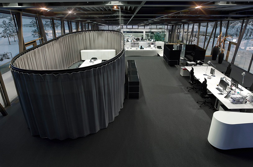 內部概念輕松地允許創造新的工作世界。因此,只有在需要的時候,討論空間才會出現,一個全方位的幕布會產生一個封閉的空間。