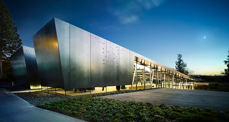 這家辦公樓位于德國哈爾旺根,這是黑森林中一個風景如畫的地方,景色令人印象深刻,與周圍的風景完美融合。獨特的立面,似乎是從地上升起的,甚至是從遠處也顯得格外醒目,而建筑的綠色屋頂似乎與景觀完美地結合在一起。下面就跟著小編來看看這個辦公裝修設計,鋼結構辦公室設計吧。