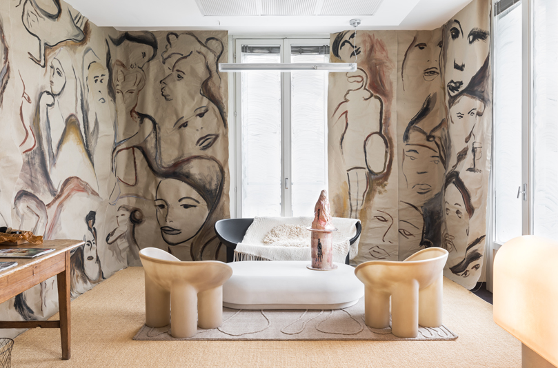 辦公室裝修由toogood為主編辦公室創造的室內裝飾,配備著名的“roly-poly”系列家具,頌揚開放和包容的概念。辦公室裝修鋒利的邊緣已經舍去,取而代之的是溫暖,圓潤的沙發床形狀,堅固的椅子和大圓桌,同時奶油灰泥和粗糙的玻璃纖維協調一致。辦公室裝修墻壁上裝飾著手繪畫布,描繪了一個輪廓和面孔的畫面 - 紀念53年的標志性時尚意大利封面,突出了雜志從女人到男人的轉變 - 而辦公室裝修焦點是設計師自己的陶瓷雕塑題為家庭胸圍3號,限量版。